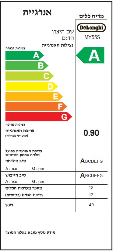 12 מערכות כלים | 5 תכניות הדחה | 2 ממטרות | לחצן חצי כמות | תכנית חזקה לכלים בעלי לכלוך קשה | בקרת מים להגנה מפני הצפות ונזילות | שקט מרבי בכל מחזורי ההדחה | דירוג אנרגטי A