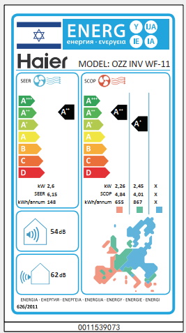 מזגן עילי HAIER OZZ INV WF 11 Inveter