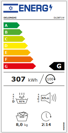 מייבש כביסה קונדנסור 8 ק"ג DELONGHI DLD8T1W