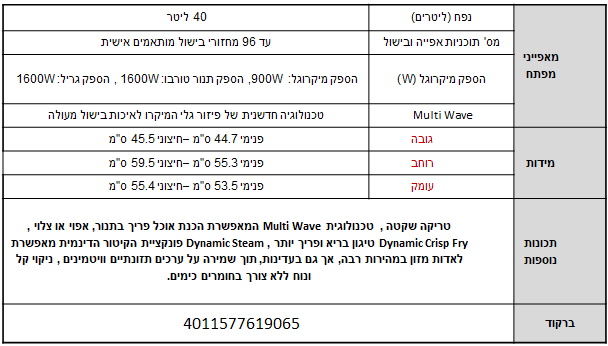 טכנולוגיה חדשנית של פיזור גלי המיקרו לאיכות בישול מעולה | לחת מיוחדת לתוצאות מעולות של אפיה וגריל פריכים | טריקה שקטה