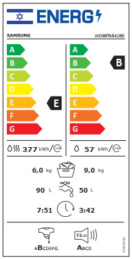 מכונת כביסה 9 ק”ג משולבת מייבש כביסה 6 ק”גSAMSUNG WD90T6542BE