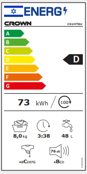 מכונת כביסה קראון 8 קילו פתח קדמי CRTW8KW