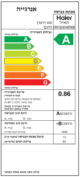 מכונת כביסה 12 ק"ג דגם HAIER HW-HW120B14979S8