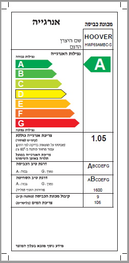 מכונת כביסה 9 ק"ג פתח קדמי HOOVER HWP69AMBC-S
