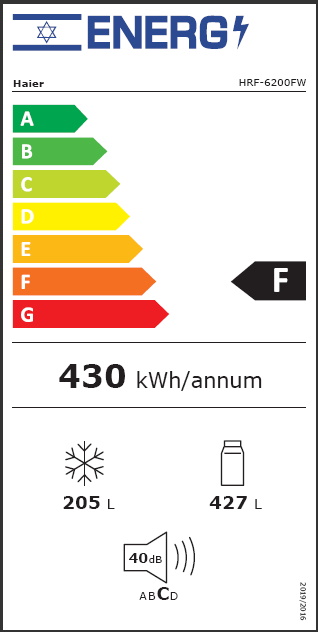 • נפח נטו: תא מזון 433 ליטר, תא הקפאה 178 ליטר