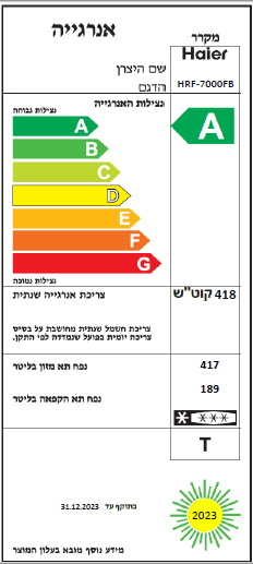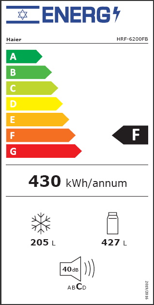 • נפח נטו: תא מזון 433 ליטר, תא הקפאה 178 ליטר