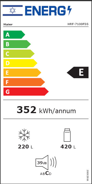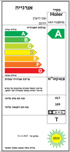 נפח נטו: תא מזון 417 ליטר, תא הקפאה 189 ליטר