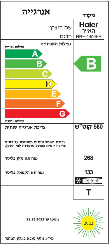 • תא הקפאה 133 ליטר (תא הקפאה א' -  66.5  ליטר, תאהקפאה ב' -  66.5 ליטר)