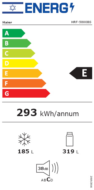 • 504 ליטר (תא מזון - 319 ליטר | תא הקפאה - 185 ליטר)
