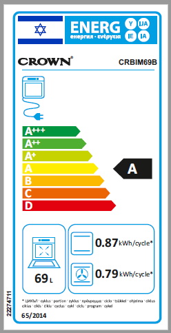 8 תוכניות לאפייה, בישול וגריל | נפח תא אפייה 65 ליטר | דירוג אנרגטי A |